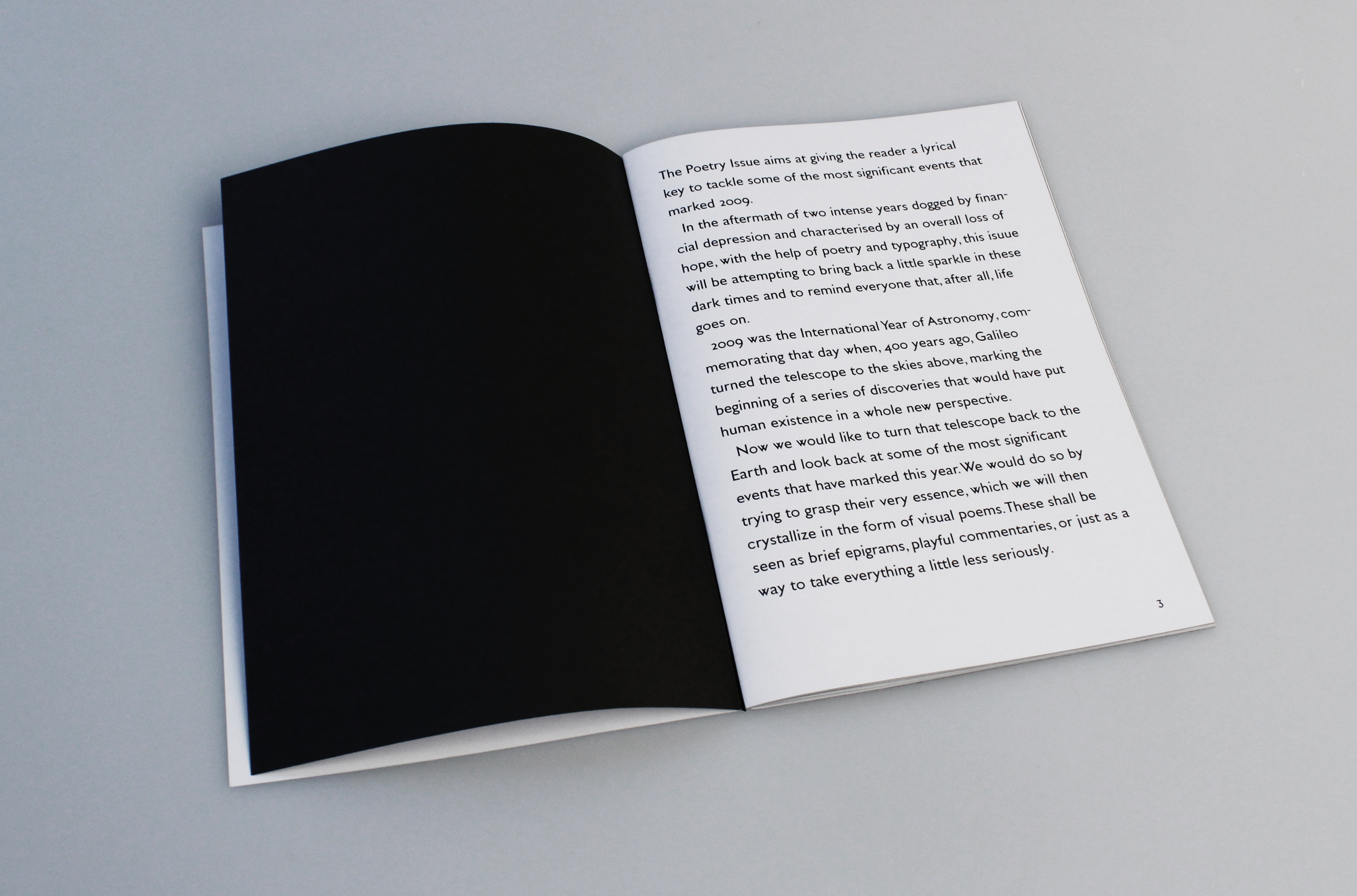 The Poetry Issue focuses on the events marking 2009 through visual poetry.